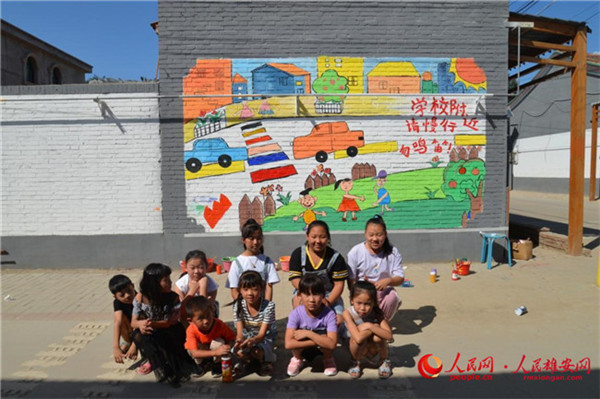 孩子們在墻繪前合影。朱峙委攝