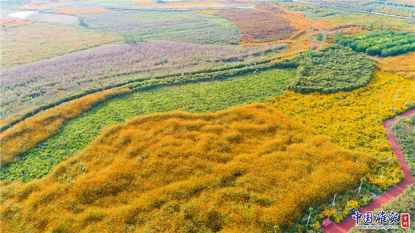 從遠(yuǎn)處俯瞰花海公園,黃色成為主色調(diào),一股秋日溫馨之感涌上心頭。中國(guó)雄安官網(wǎng)記者毛鶴然 攝