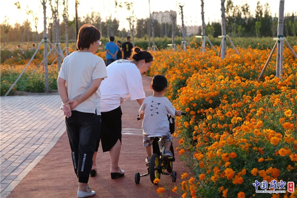 傍晚時(shí)分,人們?cè)诠珗@里散步賞花,享受著花兒帶來(lái)的甜美。中國(guó)雄安官網(wǎng)張?zhí)旎?攝