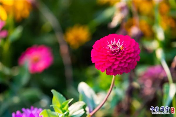 卯足了勁兒綻放的百日菊,正享受著人們欣賞的目光。中國(guó)雄安官網(wǎng)記者毛鶴然 攝