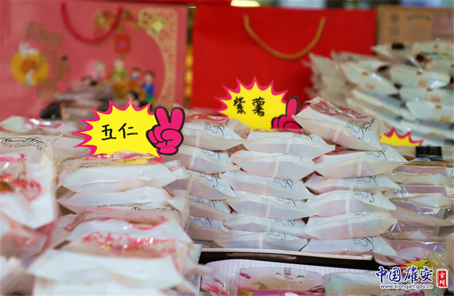 “為了照顧個別顧客,我們還專門準(zhǔn)備了無糖月餅?!币患腋恻c(diǎn)鋪的店主劉蕾向記者介紹,五仁餡和咸蛋黃餡賣得最好,今天中午已經(jīng)全部售罄。特別是咸蛋黃餡的月餅,是專門用白洋淀的咸鴨蛋制作而成,能夠代表雄安當(dāng)?shù)靥厣?,許多顧客買來用于走親訪友,供不應(yīng)求。