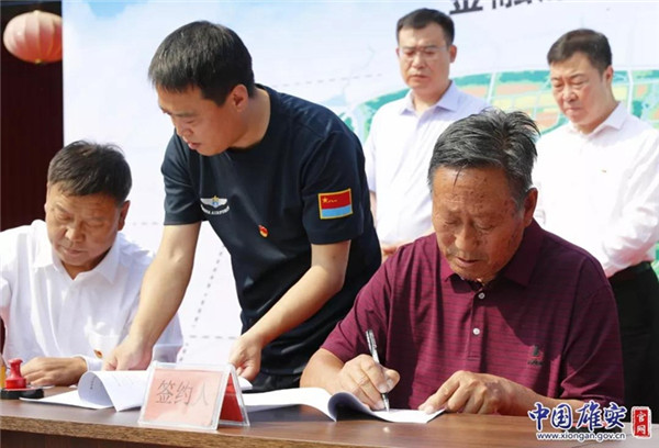 河西村71歲的老黨員陳仲山上臺(tái)簽約。中國雄安官網(wǎng)記者馬夢迪 攝