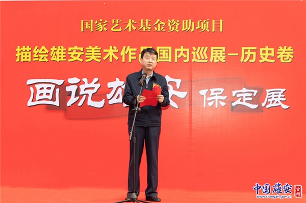 保定市委宣傳部副部長(zhǎng)、市文化廣電和旅游局黨組書記李洪強(qiáng)說(shuō),本次展出的藝術(shù)作品具有濃厚的地域特色、強(qiáng)烈的藝術(shù)魅力和鮮明的時(shí)代特征,將有力推動(dòng)保定市、雄安新區(qū)兩地文化事業(yè)更好更快發(fā)展。