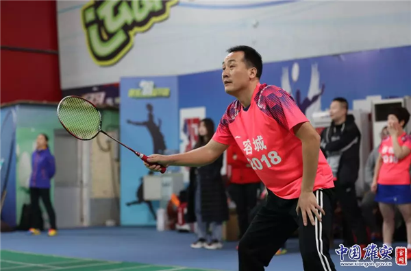 2018年容城縣迎新春羽毛球賽上,選手專注于比賽。中國雄安官網(wǎng)毛鶴然 攝