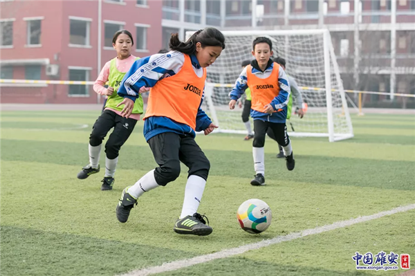 雄縣第一小學(xué)的學(xué)生們身穿專業(yè)裝備,在球場(chǎng)上揮灑汗水。 王永康 攝