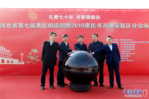 10月26日,河北省第七屆惠民閱讀周暨2019惠民書市雄安分會場啟動儀式現(xiàn)場,出席活動領(lǐng)導(dǎo)共同按下啟動球。中國雄安官網(wǎng)陳凱昆 攝