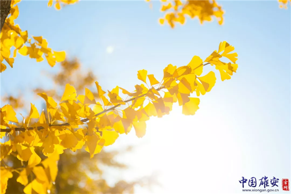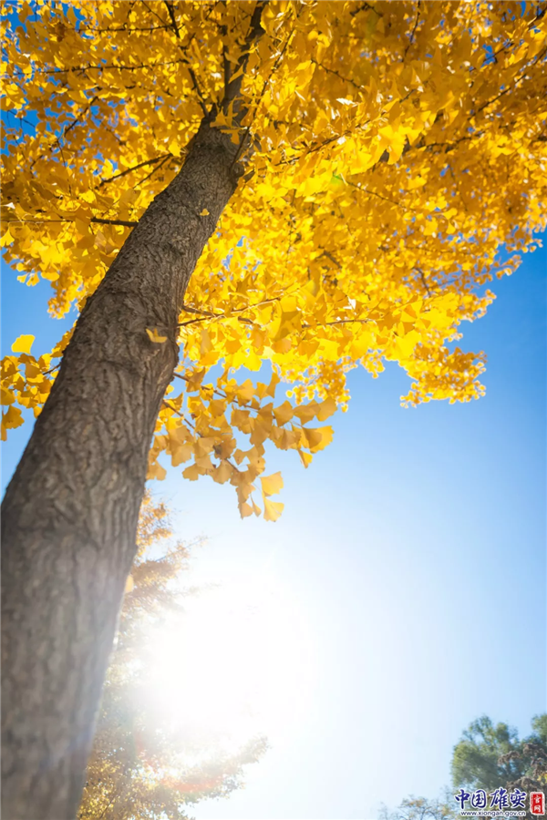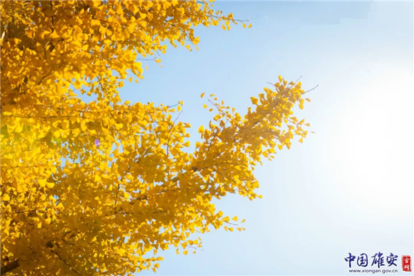 晴朗秋日里,黃燦燦的銀杏葉引人注目。中國雄安官網(wǎng)馬夢(mèng)迪 攝