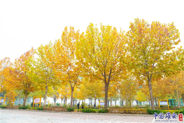 深秋時(shí)節(jié),雄安新區(qū)道路旁滿樹金黃。中國雄安官網(wǎng)毛鶴然 攝