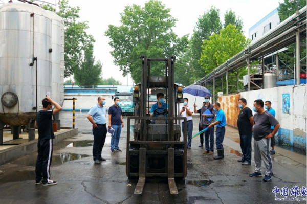 檢查組對(duì)廠內(nèi)專用機(jī)動(dòng)車輛安全使用進(jìn)行檢查。雄安新區(qū)綜合執(zhí)法局供圖