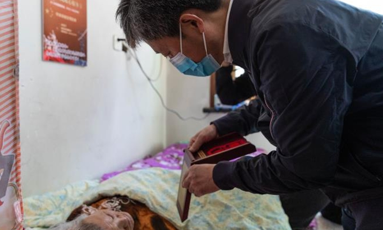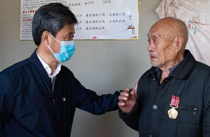 84歲的徐敏老人17歲應(yīng)征入伍,參加過抗美援朝戰(zhàn)役。他雖然年事已高,但仍然精神抖擻、聲音洪亮。高立春一行來到徐敏家中,與他親切交談,并送上米、面、油、牛奶等慰問品。高立春對(duì)老人投身抗美援朝、經(jīng)歷浴血奮戰(zhàn)的大無畏精神表示敬意,感謝他們?yōu)樾轮袊?guó)作出的貢獻(xiàn),并親自為他佩戴上“中國(guó)人民志愿軍抗美援朝出國(guó)作戰(zhàn)70周年”紀(jì)念章。同時(shí),高立春還要求相關(guān)部門和工作人員要時(shí)刻關(guān)心、照顧好老人,及時(shí)主動(dòng)地幫助老人解決生活困難,并叮囑老人有任何困難第一時(shí)間找退役軍人服務(wù)中心這個(gè)“娘家人”。