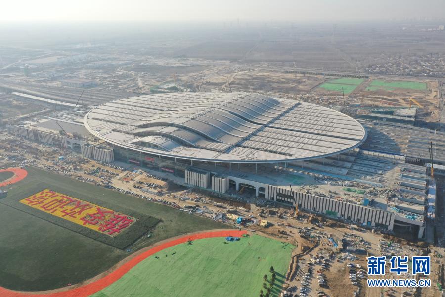 這是河北雄安站(無(wú)人機(jī)照片,12月16日攝)。新華社發(fā)(中鐵建工集團(tuán)雄安站項(xiàng)目部供圖)