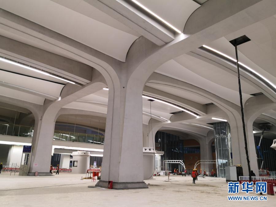 這是河北雄安站首層候車大廳清水混凝土“開花柱”(手機(jī)照片,12月16日攝)。新華社記者曹國(guó)廠 攝