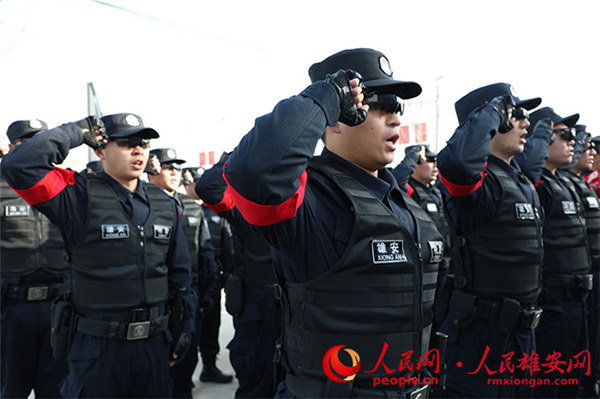 全體民、輔警面向警旗莊嚴(yán)宣誓。雄安新區(qū)公安局供圖