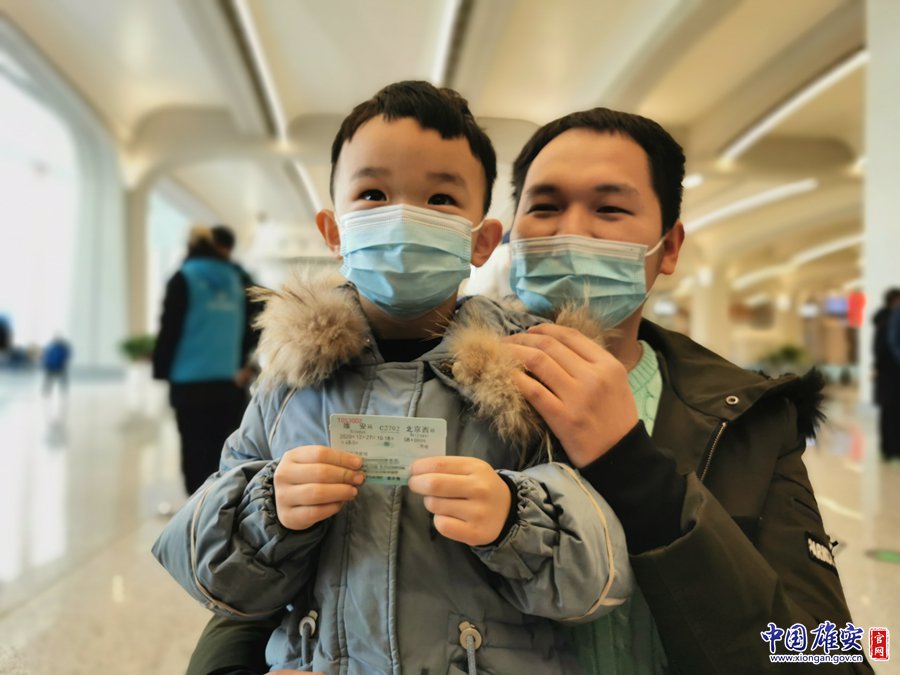 12月27日,在雄安站,乘坐C2702次列車的旅客在列車前拍照留念。劉東堯 攝