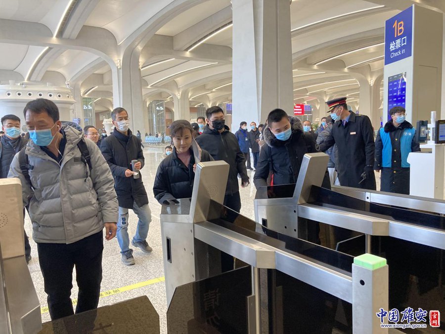 12月27日,在雄安站候車大廳,旅客正在排隊(duì)檢票。黃海 攝