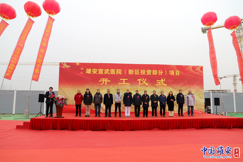 雄安新區(qū)公共服務(wù)局、啟動區(qū)指揮部相關(guān)負(fù)責(zé)人,首都醫(yī)科大學(xué)宣武醫(yī)院,雄安城發(fā)投資公司等參建單位相關(guān)負(fù)責(zé)人以及項(xiàng)目管理人員、工人代表共100余人參加了開工儀式。