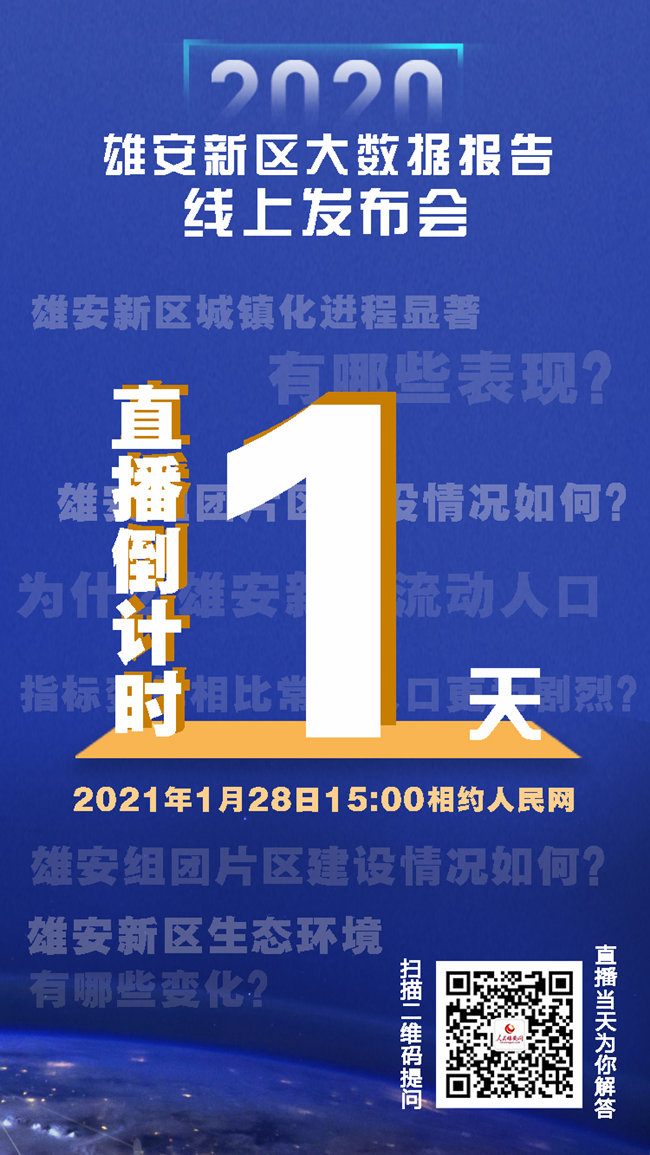 人民網(wǎng)雄安1月27日電 明天,將有關(guān)于雄安的重要消息發(fā)布?!拔磥碇?拔節(jié)生長:大數(shù)據(jù)見證雄安之變”雄安新區(qū)2020年大數(shù)據(jù)報(bào)告線上發(fā)布會(huì)定于28日下午3點(diǎn),在人民網(wǎng)演播廳舉行。發(fā)布會(huì)上,百度商業(yè)智能實(shí)驗(yàn)室專家將重點(diǎn)從生態(tài)環(huán)境變化、基建成果、產(chǎn)業(yè)發(fā)展、人口變化和熱門關(guān)注度等角度對(duì)雄安新區(qū)2020年大數(shù)據(jù)報(bào)告進(jìn)行解讀,用數(shù)據(jù)幫助你客觀、全面了解雄安新區(qū)過去一年的建設(shè)發(fā)展內(nèi)容和成果。屆時(shí),人民網(wǎng)將全程直播,敬請(qǐng)關(guān)注!
