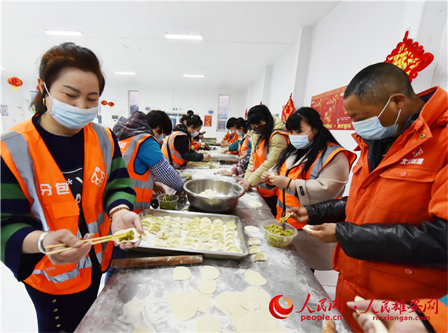 雄安新區(qū)容東片區(qū)B1組團(tuán)安置房項(xiàng)目留雄過年建設(shè)者包餃子。