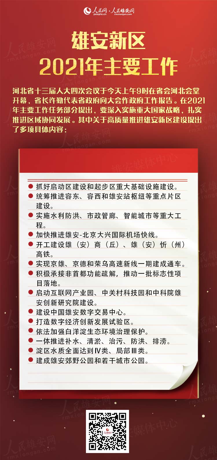 人民網(wǎng)雄安2月19日電(施云娟 竇薇) 河北省十三屆人大四次會議于今天上午9時在省會河北會堂開幕,河北省長許勤代表省政府向大會作政府工作報告。在2021年主要工作任務(wù)部分提出,要深入實施重大國家戰(zhàn)略,扎實推進(jìn)區(qū)域協(xié)同發(fā)展。其中關(guān)于高質(zhì)量推進(jìn)雄安新區(qū)建設(shè)提出了多項具體內(nèi)容: