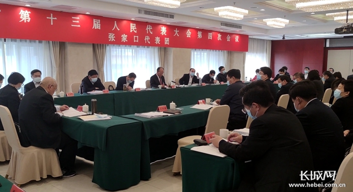 張家口代表團(tuán)的代表們正在審議。長城網(wǎng)記者 趙嬌瑩 攝