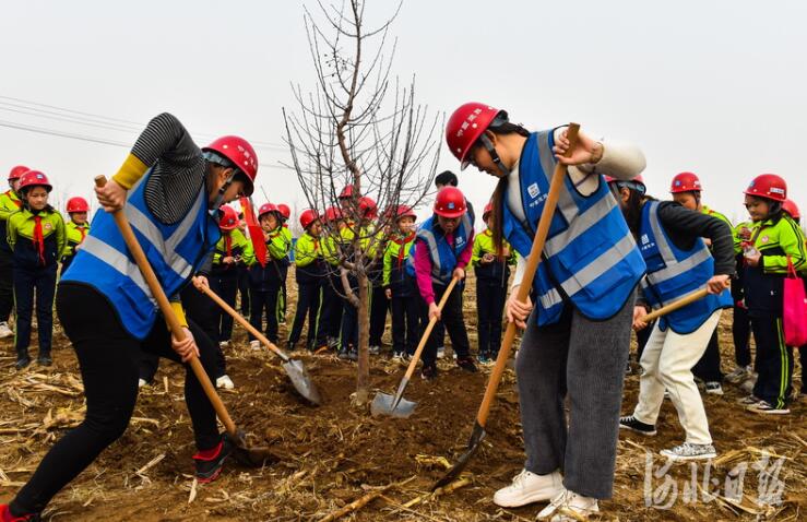 植樹節(jié)到來之際,中建二局與東張楚小學(xué)聯(lián)合在雄安“千年秀林”舉行“播種綠色、播種文明”植樹活動(dòng),共同栽下“雄安樹”“園丁樹”“心愿樹”,為雄安“千年秀林”添新綠。雄安新區(qū)設(shè)立以來,已累計(jì)造林約41萬畝。河北日報(bào)記者耿輝攝影報(bào)道