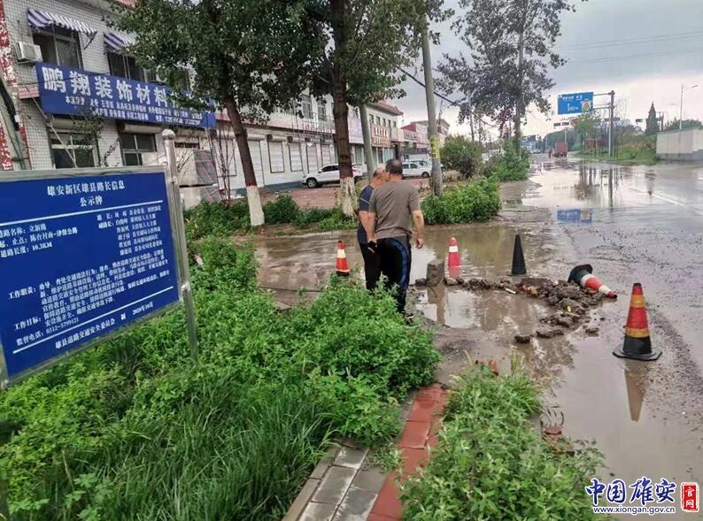 雄縣交通運輸局相關(guān)工作人員對路面坑洼處進(jìn)行圍擋。中國雄安官網(wǎng)發(fā)