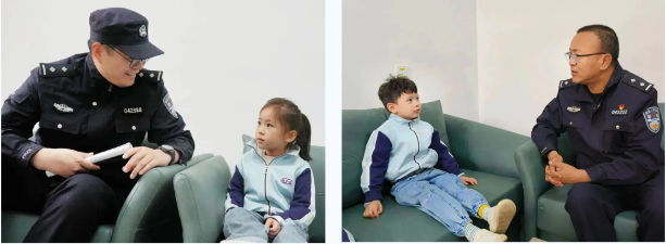 活動中,祥輝幼兒園的小朋友化身“小記者”,對民警進行了“采訪”。面對提問,民警一一進行了回答,讓小朋友們在互動交流中進一步提高了安全意識。
