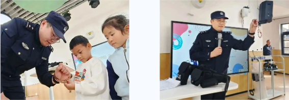 為滿足小朋友們的好奇心,民警現(xiàn)場展示了一些日常警用裝備,并講解了警用裝備的性能、作用和使用方法,讓小朋友們對警察這份職業(yè)有了更深刻的認識和了解。