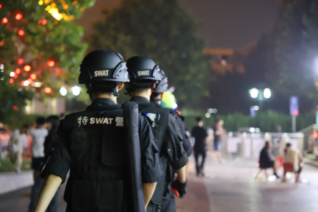 隨著霓虹燈點(diǎn)亮,充滿活力的雄州路在夜色中更加熱鬧,一隊(duì)巡邏民警步伐堅(jiān)定走過(guò)路口。不管是在喧鬧的夜市街區(qū),還是在寧?kù)o的背街小巷,隨處可見(jiàn)民警巡邏、警燈閃爍。