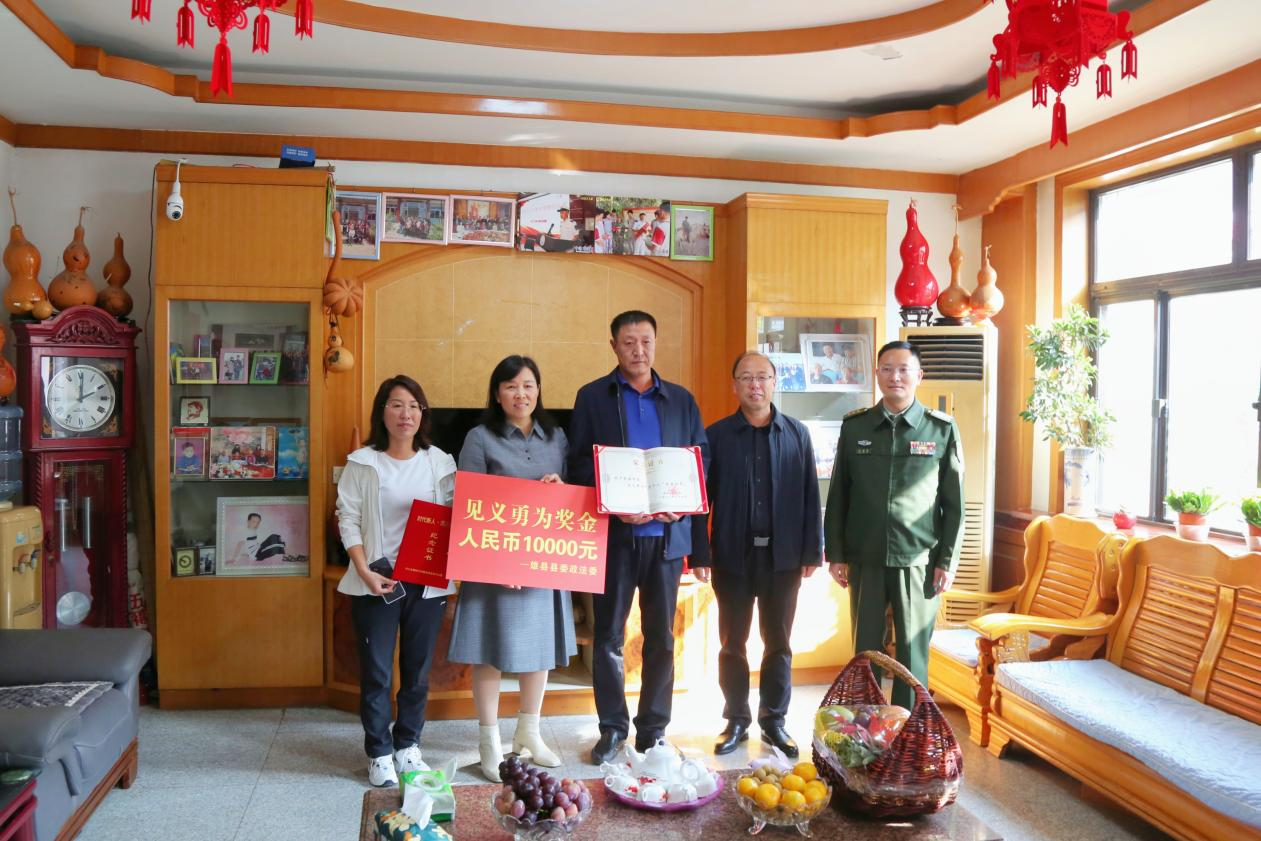 日前,在海軍某部服役的河北省雄安新區(qū)雄縣籍現(xiàn)役軍人趙磊,被家鄉(xiāng)雄縣人民政府授予“見義勇為先進個人”榮譽稱號。雄縣相關(guān)領(lǐng)導(dǎo)專程到“見義勇為先進個人”趙磊家中走訪慰問,為趙磊親屬頒發(fā)了證書和獎金。