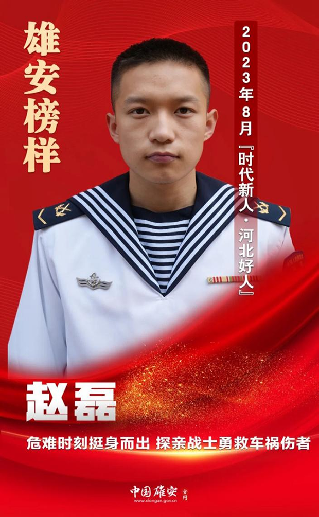 據(jù)了解,趙磊出生于2000年,2020年9月在大學(xué)期間應(yīng)征入伍,現(xiàn)在是海軍某部的一名潛水員。趙磊在部隊多次參加重大活動受到表彰,榮立集體三等功一次。他在干好本職工作的同時,還熱心參與社會公益事業(yè),今年7月被聘為“雄縣2023年征兵宣傳形象大使”和“雄縣職教中心校外思政輔導(dǎo)員”,還被河北省文明委評為“‘雙爭’有我——2023年8月‘時代新人·河北好人’”。