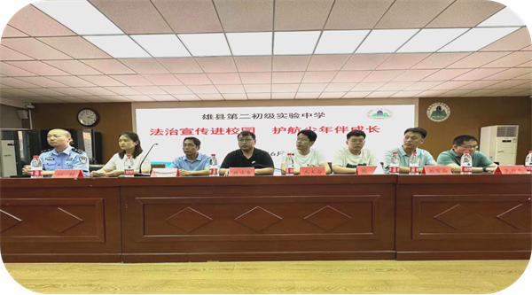 按照“八五”普法工作要求,河北省保定市雄縣扎實開展“關(guān)愛花朵計劃”三年行動,持續(xù)加大“法治進校園”普法宣傳教育力度,厚植法治土壤,“護苗”茁壯成長,不斷增強在校學生的法治觀念和自我保護能力。2024年6月5日,雄縣縣委政法委聯(lián)合縣人大辦、縣政協(xié)辦、團縣委、縣婦聯(lián)、縣公安局、縣教育局、縣民政局等部門在雄縣第二初級實驗中學開展“法治宣傳進校園,護航少年伴成長”普法宣傳?;顒佑尚iL鄭通同志主持,有關(guān)部門領(lǐng)導出席并講話,部分老師、學生代表參加了活動。