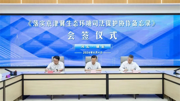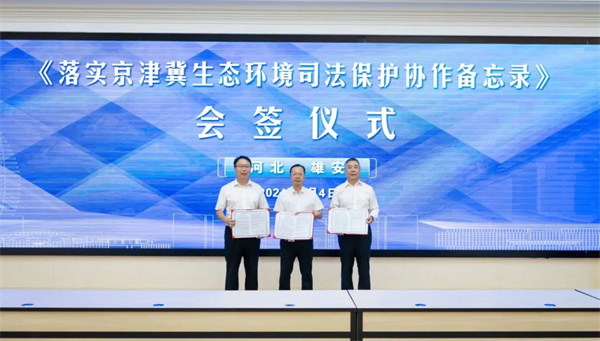 活動中,三家法院共同簽署《落實京津冀生態(tài)環(huán)境司法保護協(xié)作備忘錄》,從聯(lián)學(xué)共建、資源共享、審執(zhí)質(zhì)效、多元共治、聯(lián)合調(diào)研、專業(yè)化隊伍建設(shè)以及環(huán)保法治宣傳等方面建立健全了更加緊密高效的京津冀法院環(huán)境資源審判工作協(xié)調(diào)聯(lián)動機制。