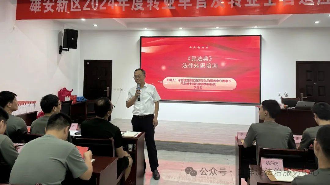 8月1日,河北雄安新區(qū)管理委員會公共服務局民政退役軍人組委托白洋淀法治服務中心為2024年度轉(zhuǎn)業(yè)軍、士官開展法治培訓。