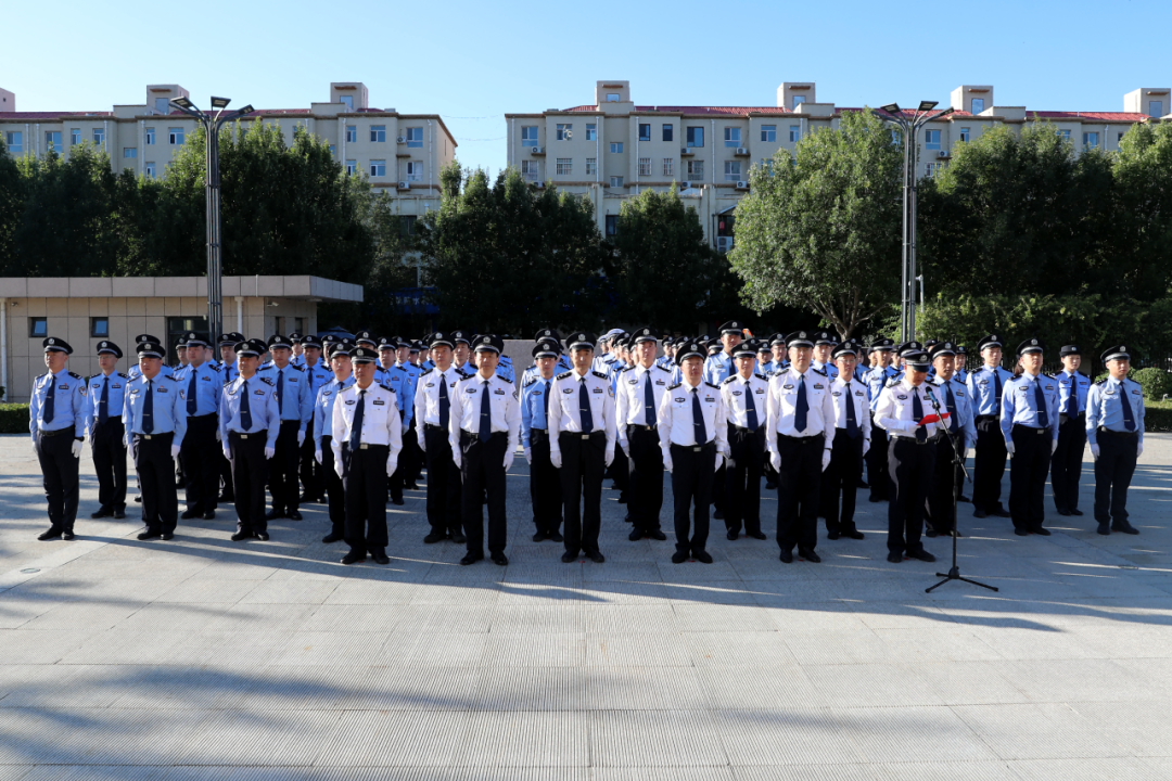 伴隨著雄壯的中華人民共和國國歌,鮮艷的五星紅旗冉冉升起,在蔚藍(lán)的天空中迎風(fēng)飄揚(yáng)。全體民輔警精神抖擻、英姿勃發(fā),面向國旗莊嚴(yán)敬禮,表達(dá)對黨的無限忠誠和對祖國的誠摯祝福。