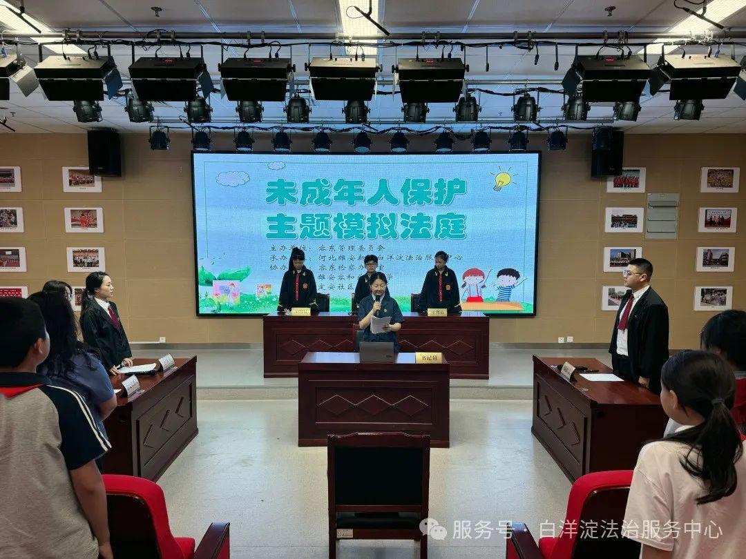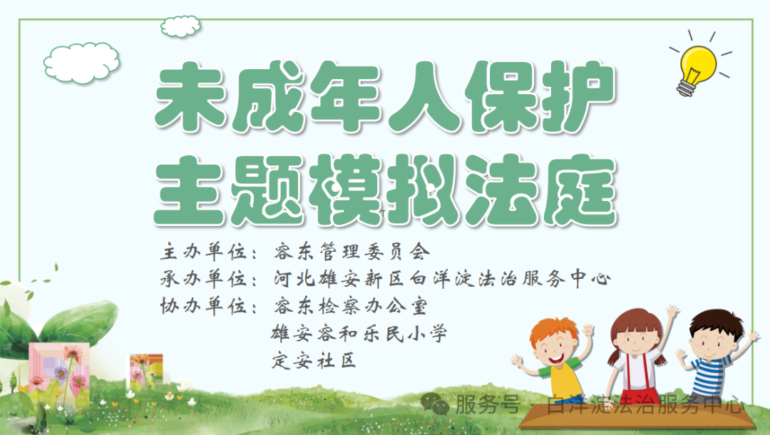 受容東片區(qū)管理委員會委托,河北雄安新區(qū)白洋淀法治服務中心在容東檢察辦公室、雄安容和樂民小學、定安社區(qū)的配合下,組織在校學生開展了以未成年人保護為主題的模擬法庭活動,為同學們帶來了一堂別開生面的法治教育課。