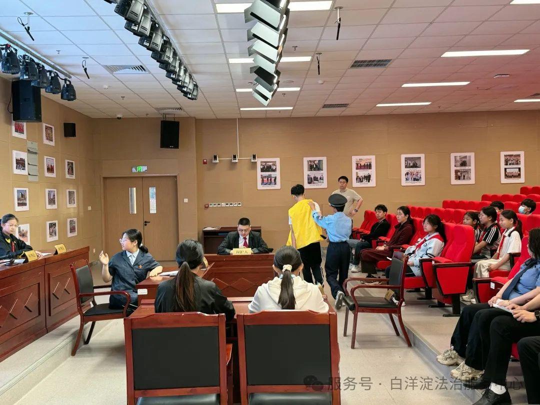 活動現場,隨著清脆的法槌聲敲響,庭審正式拉開帷幕。同學們分別扮演審判長、陪審員、被告人、被害人等角色,模擬了被告人張帥搶劫未成年在校生張?zhí)锾镆话傅膶徟羞^程,從法庭調查、舉證質證到法庭辯護、最后陳述,每一個環(huán)節(jié)都嚴謹有序。