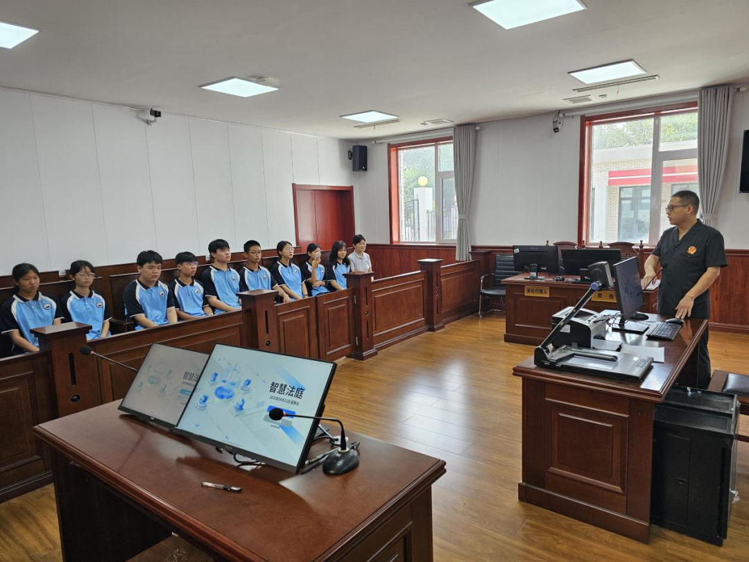 在法官助理肖陽的指導(dǎo)下,學(xué)生們分別扮演審判長、人民陪審員、書記員、原告、被告等角色,通過“沉浸式”模擬庭審,讓法律條文變成了看得見、摸得著的體驗,讓學(xué)生們深刻感受到法庭的莊嚴與神圣。模擬法庭結(jié)束后,法庭干警與學(xué)生們進行座談,向?qū)W生們發(fā)放了關(guān)愛未成年人提示函。