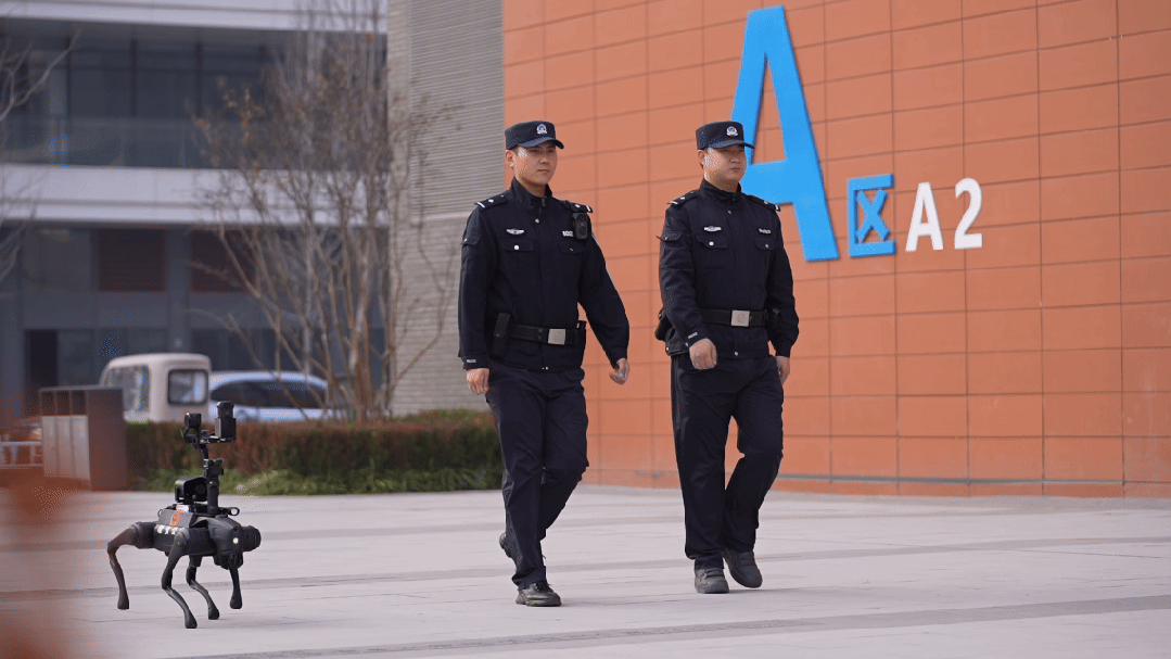 在新區(qū)首屆國際女籃邀請賽、雄安馬拉松、乒超聯(lián)賽等大型賽事活動現(xiàn)場,警用無人機在空中盤旋巡查,實時傳輸現(xiàn)場畫面,同時通過語音播報疏導人群。場館內外,警用無人巡邏車與機器狗協(xié)同巡邏,巡邏車憑借智能化分析實時排查風險隱患,機器狗則循著預設路線自主穿梭,自動伴隨巡邏,成為安?,F(xiàn)場的“硬核力量”。
