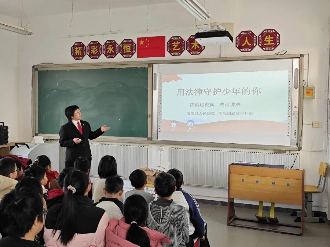 走進(jìn)安新南六小學(xué)、大趙莊小學(xué),法官們結(jié)合青春期學(xué)生的心理特點(diǎn)與成長(zhǎng)需求,以通俗的語言、真實(shí)的案例,生動(dòng)講解防范校園欺凌、性侵害、網(wǎng)絡(luò)沉迷及電信詐騙等關(guān)鍵知識(shí)。在五星紅旗下,同學(xué)們高舉右拳,莊嚴(yán)宣誓:“不做殘忍的欺凌者、不做冷漠的旁觀者、不做沉默的受害者,團(tuán)結(jié)同學(xué)、友善待人!”鏗鏘誓言回蕩校園,不僅將法治信念深深鑄入童心,也將整場(chǎng)活動(dòng)推向情感的高潮。