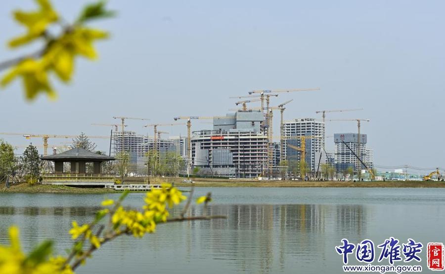 熱火朝天的建筑工地與爛漫春花,構(gòu)成了雄安春日最獨特的風景。胡忠 攝