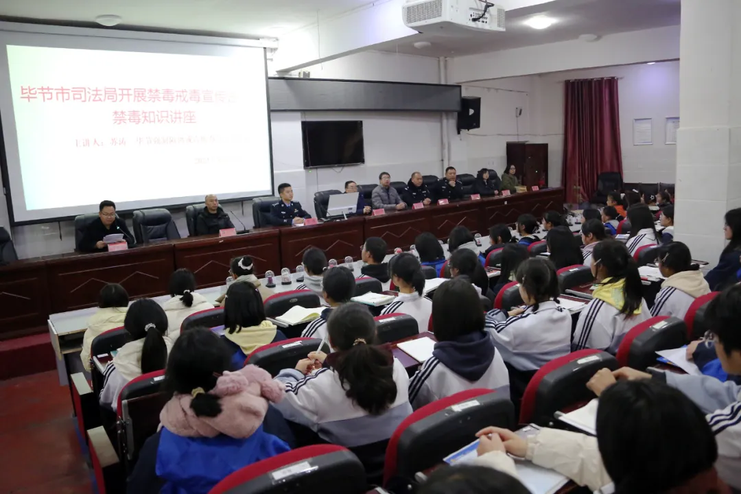 近日,貴州省畢節(jié)強(qiáng)制隔離戒毒所(以下稱畢節(jié)所)攜手畢節(jié)市司法局、威寧縣司法局及畢節(jié)所駐威寧縣專地融合工作站一起走進(jìn)威寧縣第九中學(xué)開(kāi)展以“青春無(wú)‘毒’,綠色守護(hù)”為主題禁毒宣傳活動(dòng)。