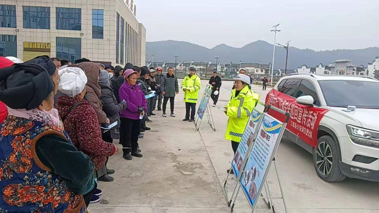 活動中,宣傳民警針對冬季群眾返鄉(xiāng)、走親訪友等出行頻率增多的情況,結(jié)合轄區(qū)農(nóng)村道路交通實際,圍繞“文明交通 攜手共創(chuàng)”“一盔一帶”等主題,向群眾普及道路交通安全知識和冬季出行注意事項,讓群眾在家門口就能學(xué)習(xí)交通安全知識。