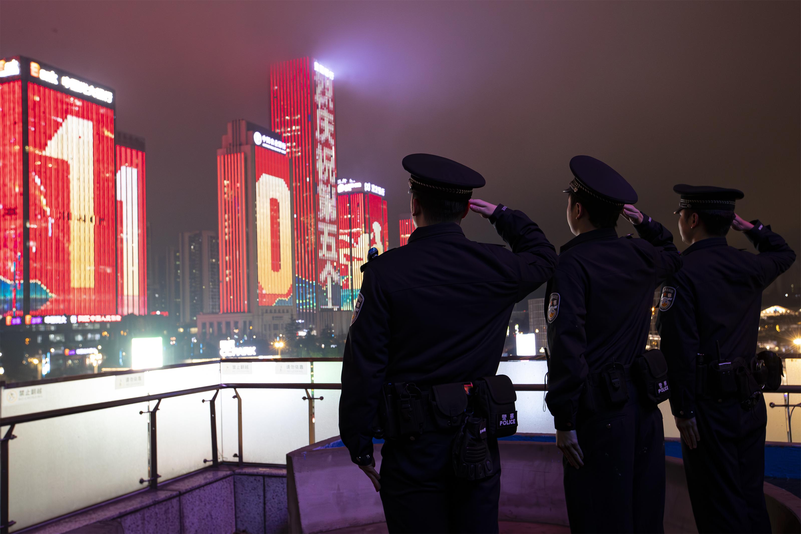 燈光為人民警察點(diǎn)亮,平安因忠誠(chéng)守護(hù)長(zhǎng)久。1月9日19時(shí),在貴州省貴陽市觀山湖區(qū)金融城,以“人民警察”為主題的燈光秀如約而至、閃亮登場(chǎng)。