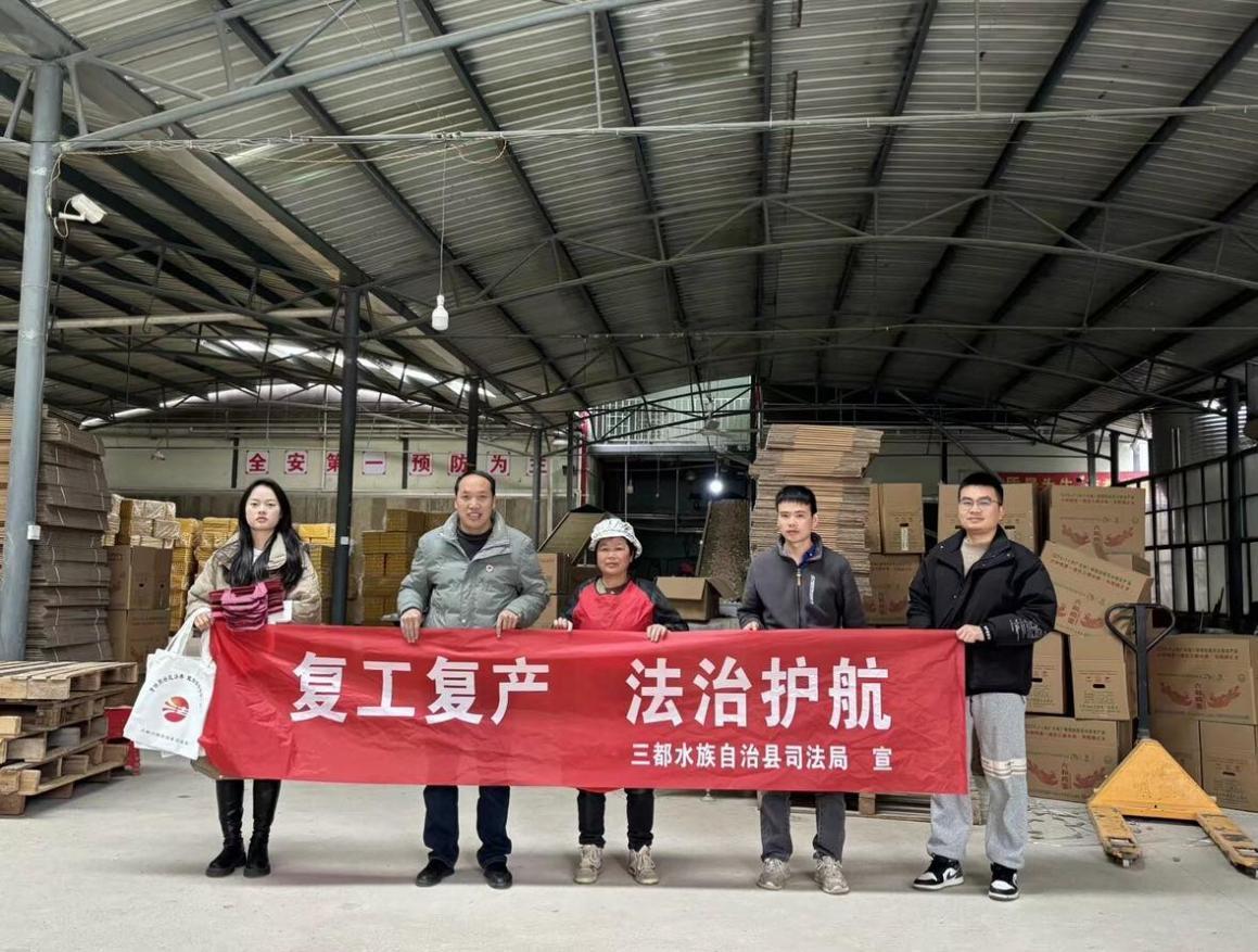 春節(jié)假期結(jié)束后,各企業(yè)陸續(xù)恢復(fù)工作。為確保企業(yè)合法、有序和高效地復(fù)工復(fù)產(chǎn),有效預(yù)防和遏制企業(yè)違法事件的發(fā)生,進(jìn)一步優(yōu)化和提升法治化營商環(huán)境,2月8日,貴州省黔南州三都縣司法局普安司法所深入普安鎮(zhèn)轄區(qū)各企業(yè),開展以“復(fù)工復(fù)產(chǎn) 法治護(hù)航”為主題的送法進(jìn)企業(yè)宣傳活動(dòng)。
