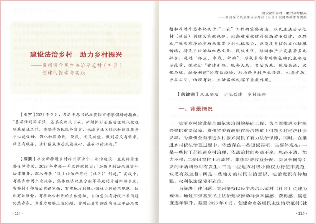 《建設(shè)法治鄉(xiāng)村 助力鄉(xiāng)村振興—貴州深化民主法治示范村(社區(qū))創(chuàng)建的探索與實踐》入選第六批全國干部學(xué)習(xí)培訓(xùn)教材。