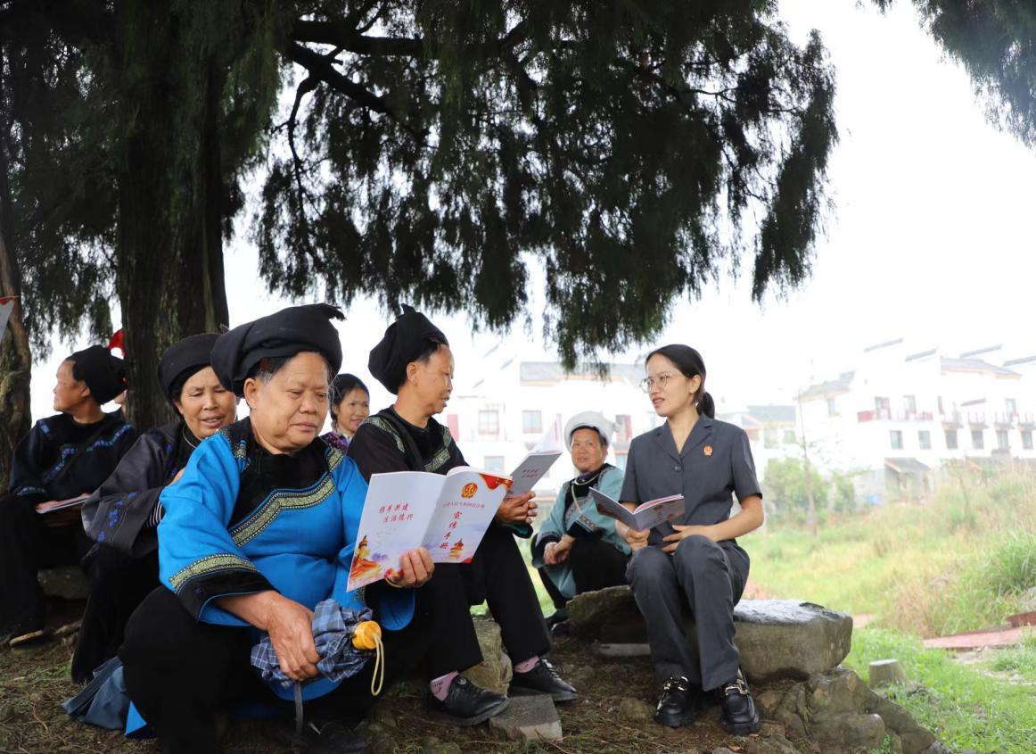 作為一名水族法官,蒙勝翠還結(jié)合本地水族群眾講傳統(tǒng)、重習(xí)俗,蒙勝翠就借助“水書先生”“繡娘”的智慧與經(jīng)驗(yàn),將水家文化習(xí)俗與現(xiàn)代法治精神相融合,通過開展“水語法庭”“布依語法庭”巡回審判,聯(lián)合“水書先生”等鄉(xiāng)賢參與矛盾糾紛調(diào)處,成立“繡娘調(diào)解室”、組建“水鄉(xiāng)巾幗調(diào)解隊(duì)伍”等,開展多方聯(lián)動,實(shí)現(xiàn)情理法融合,促進(jìn)矛盾糾紛實(shí)質(zhì)化解。