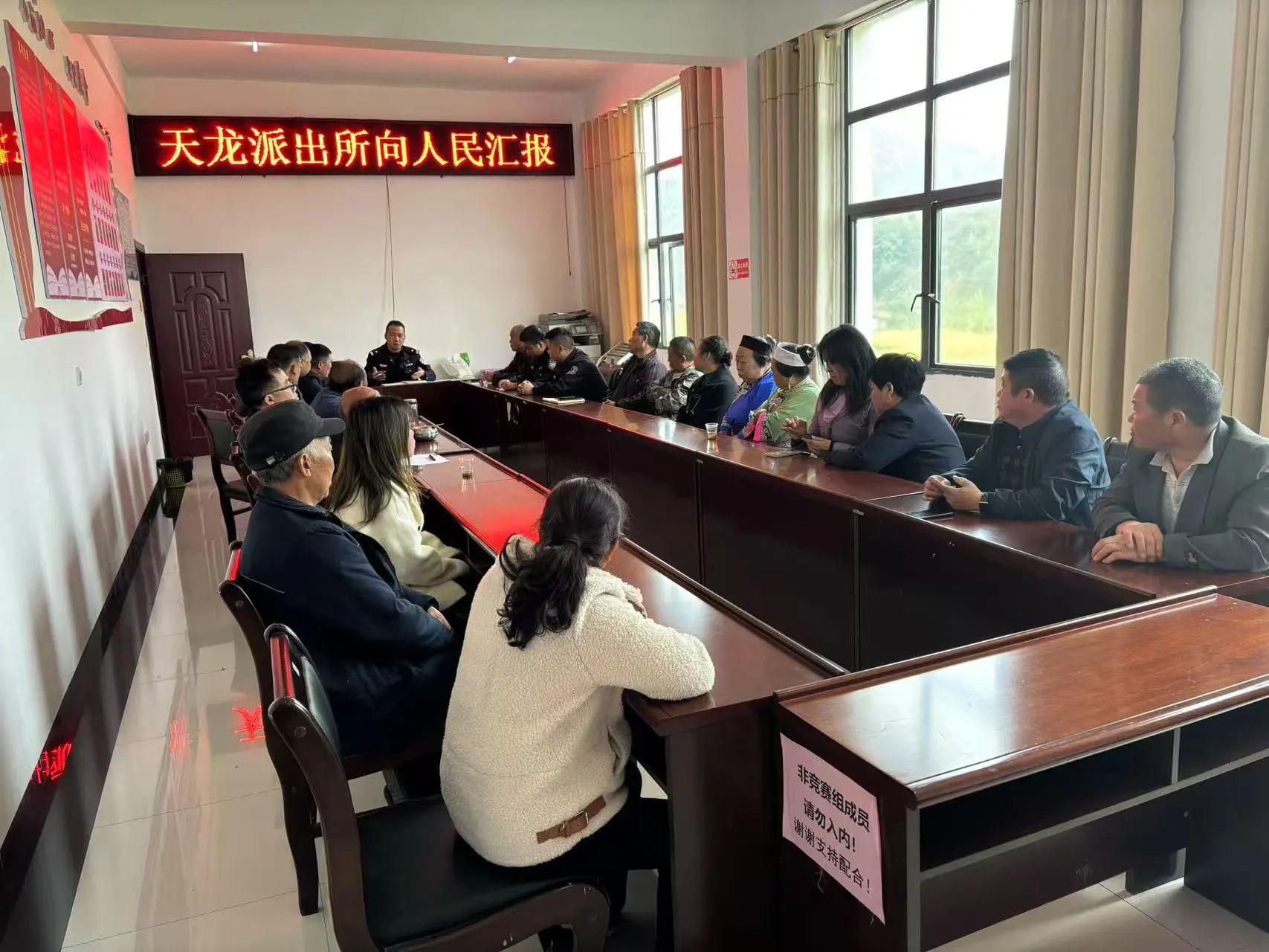為深化警民聯(lián)動機制,推進平安建設(shè)提質(zhì)增效,近日,貴州省安順市平壩區(qū)公安局天龍派出所在天龍鎮(zhèn)天龍村開展“向人民匯報”警民懇談活動。政府相關(guān)部門代表、村委干部、個體工商戶及群眾代表等30余人齊聚一堂,共話轄區(qū)治安治理新成效,共謀平安建設(shè)新路徑。