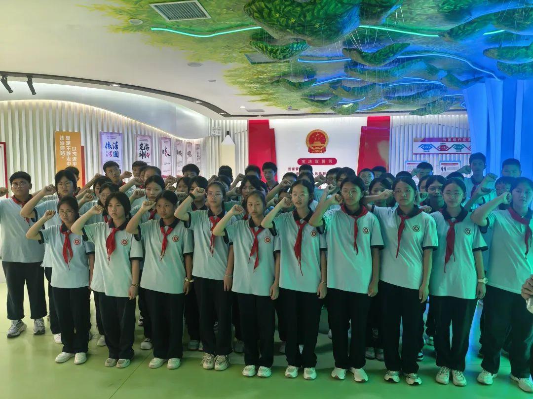 在講解員的帶領(lǐng)下,學(xué)生們有序參觀了序廳、法治學(xué)習(xí)廳、保護(hù)懲戒廳、安全教育廳、強(qiáng)國(guó)教育廳、尾廳和模擬法庭等7個(gè)主題展廳。在法治學(xué)習(xí)廳,同學(xué)們進(jìn)行憲法宣誓,在心中種下法治意識(shí)與規(guī)則意識(shí)的種子;通過(guò)講解員的介紹,學(xué)習(xí)了憲法、民法典和古代法律知識(shí)等內(nèi)容,明晰了法律在社會(huì)生活中的廣泛應(yīng)用和保障作用。