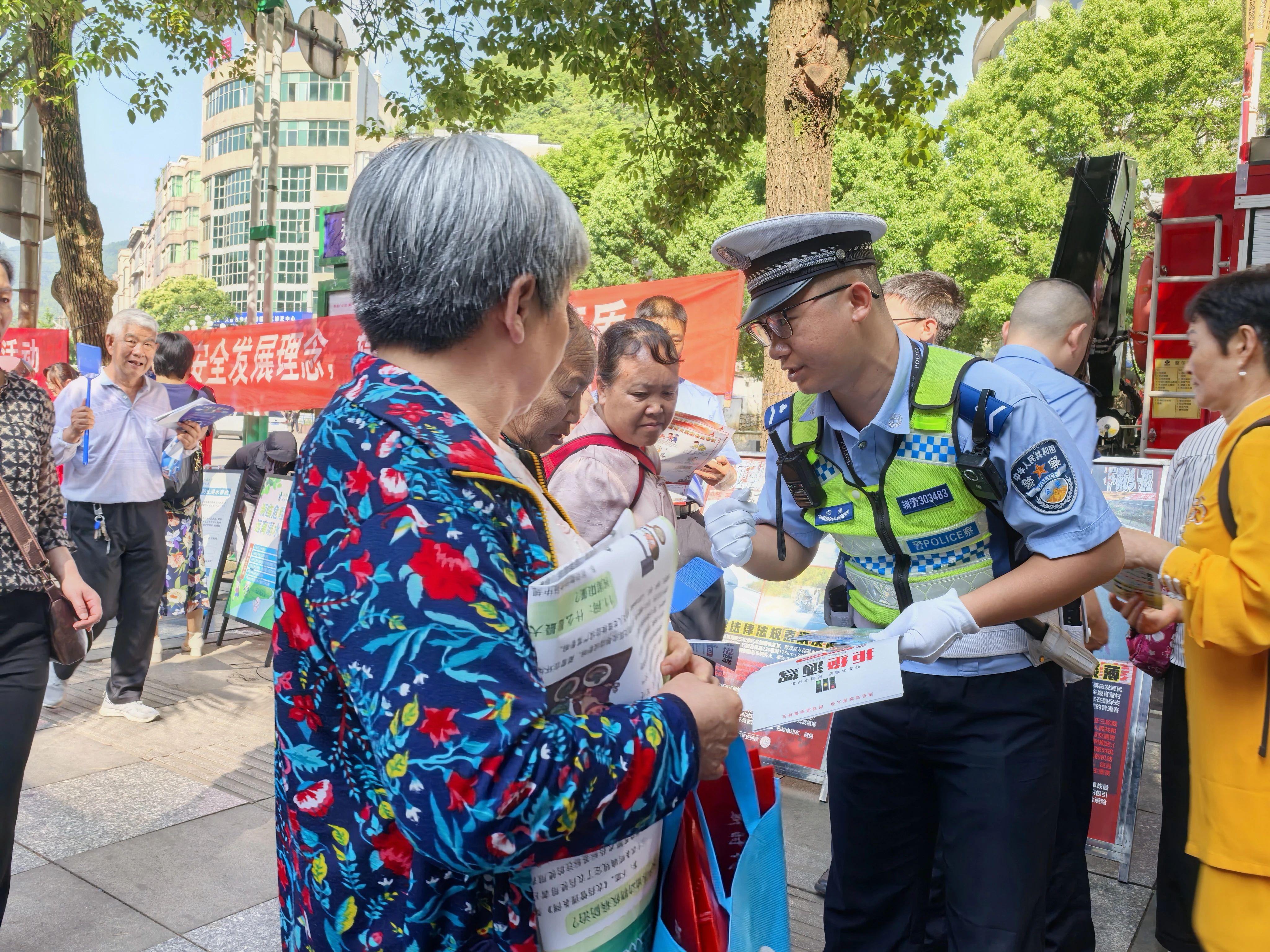 活動(dòng)現(xiàn)場(chǎng),氣氛熱烈而有序。民警通過(guò)多種形式向過(guò)往群眾宣傳安全生產(chǎn)相關(guān)知識(shí)。交警部門(mén)重點(diǎn)圍繞道路交通安全展開(kāi)宣傳,現(xiàn)場(chǎng)設(shè)置了交通安全宣傳展板,展示了近年來(lái)因不遵守交通規(guī)則而導(dǎo)致的交通事故案例,以直觀的畫(huà)面讓群眾深刻認(rèn)識(shí)到遵守交通法規(guī)的重要性。同時(shí),交警還向群眾發(fā)放交通安全宣傳手冊(cè),倡導(dǎo)大家遵規(guī)守法明理、安全文明出行。治安部門(mén)則聚焦消防安全、防溺水安全以及防電信詐騙等內(nèi)容開(kāi)展宣傳,提醒群眾提高自身防范意識(shí)和應(yīng)急處置能力。